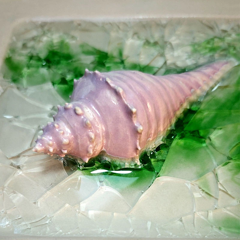 Spiked conch shell; White clay