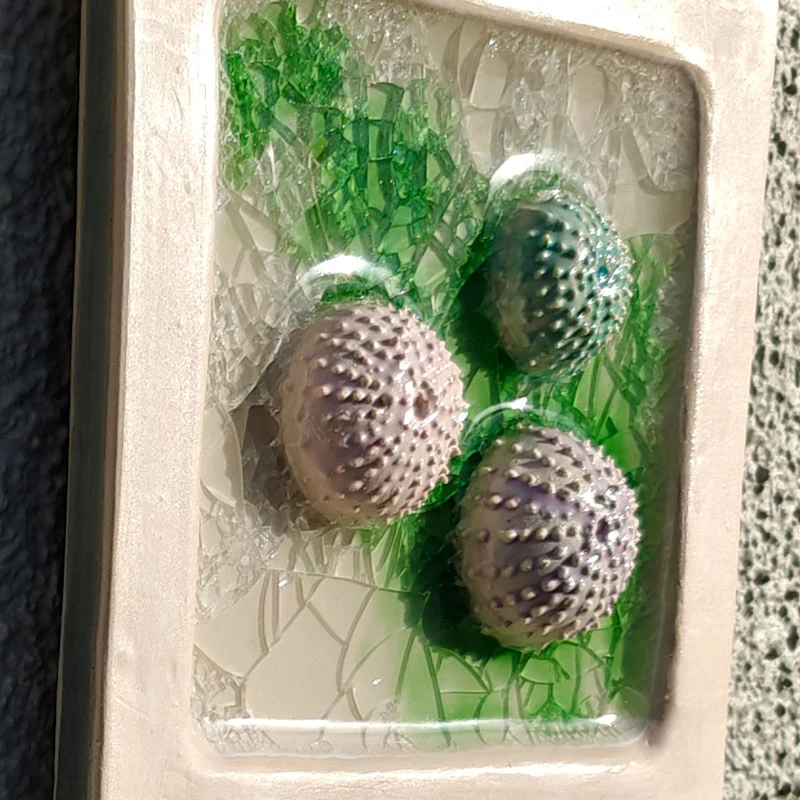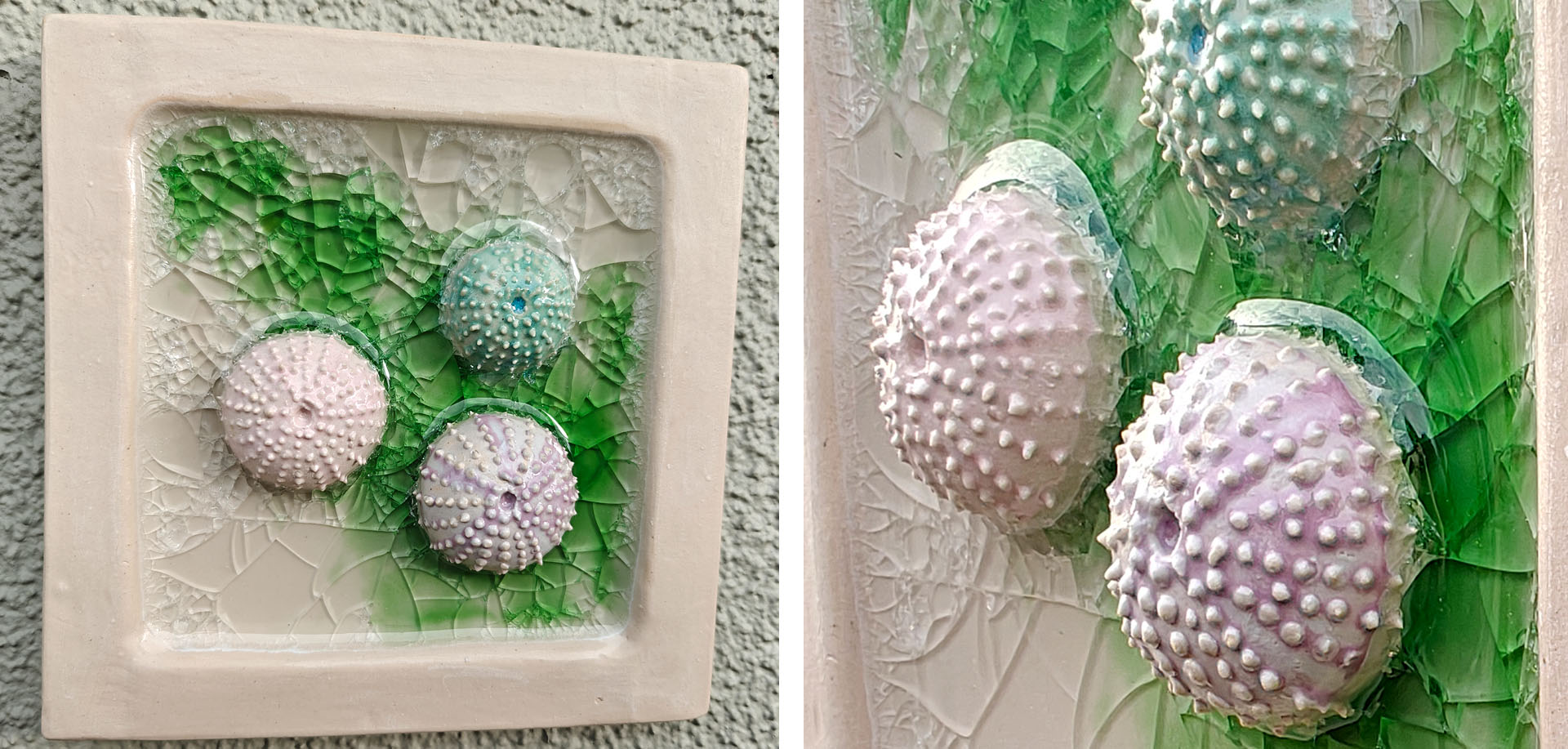 Sea urchins close-up; white clay