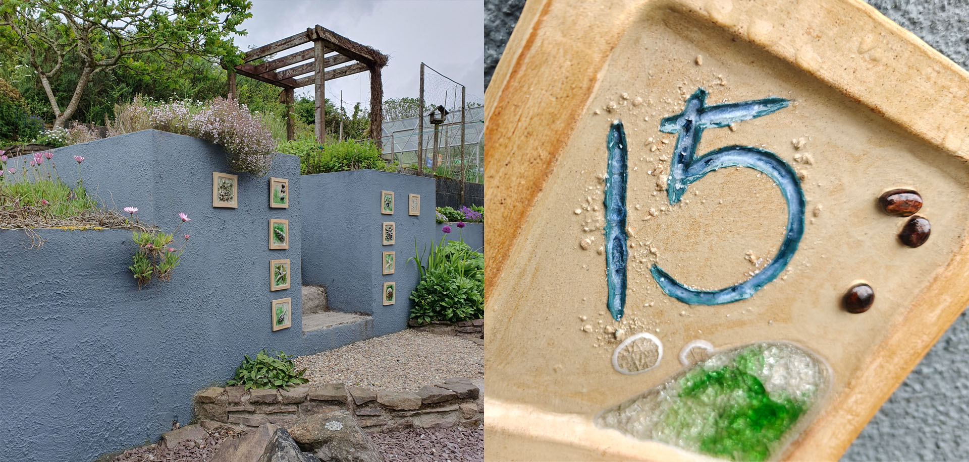 Beautiful, all-weather, glazed pottery wall art, hand-made in Ireland.